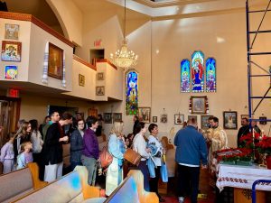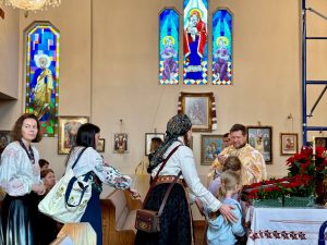 Розділити свято з нами прибули отець Василь Савчур та парафіяни Храму Святого рівноапостольного князя Володимира Великого Піднесений настрій богослужіння посилив наш парафіяльний хор під керівництвом Уляни Малиняк, а також до хору приєдналися хористи храму святого Володимира, творячи єдиний та урочистий голос молитовного славослов’я.